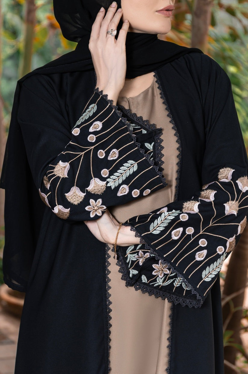 Experience luxury and elegance with our Black & Beige Coat Style Abaya, crafted from Imported Luxe Nidha Fabric that offers a premium texture and exquisite comfort. This abaya features a sophisticated coat-style design, perfect for those who appreciate refined fashion with modesty.